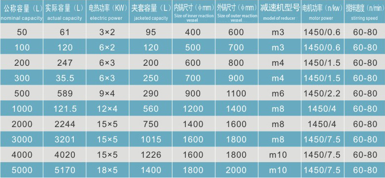 反應鍋由鍋體、鍋蓋、攪伴器、電加熱油夾管、支承及傳動裝置、軸封裝置、溢油槽等組成,并配有電加熱棒及測溫、測壓表。
