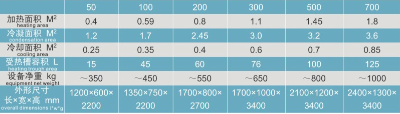 This equipment is mainly composed by concentrator, primary condenser, vapor-liquid separator, primary condenser, cooler and liquid barrel. All the said six parts are made of stainless steel. The concentrator is of jacket structure; the condenser is of tabulation type and the cooler is of coiler type. |